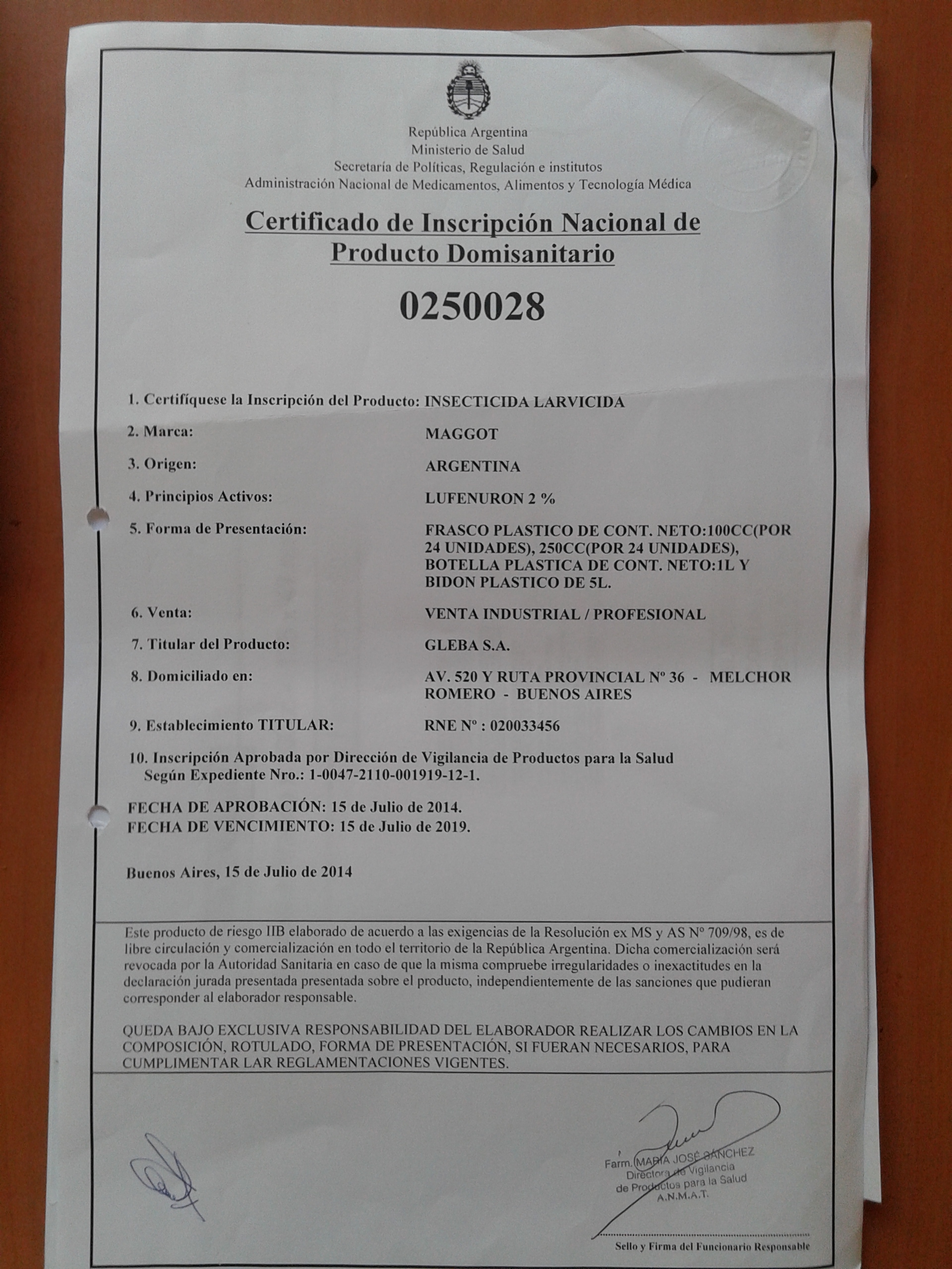 Es un regulador de crecimiento, que corresponde a la familia de las Benzoilureas e inhibe la sintesis de quitina en los estadios inmaduros de los insectos. Por esta razón, pese a ser efectivo para todo tipo de insectos, es recomendado para aquellas especies cuyo ciclo de metamorfosis posee estadios larvales (al igual que todos los reguladores de creciemiento), moscas, mosquitos, pulgas, hormigas, etc. Puede mezclarse sin incovenientes con caulquier tipo de insecticidas, principalmente concentrados emulsionables.
